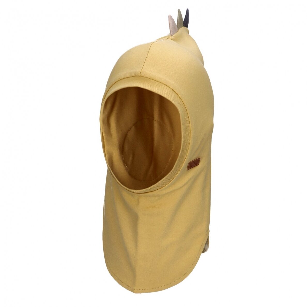 Dvigubo trikotažo kepurė-šalmukas su neperpučiama membrana ausų srityje ir odiniu logo ženkliuku. Skirta pavasariui arba rudeniui.